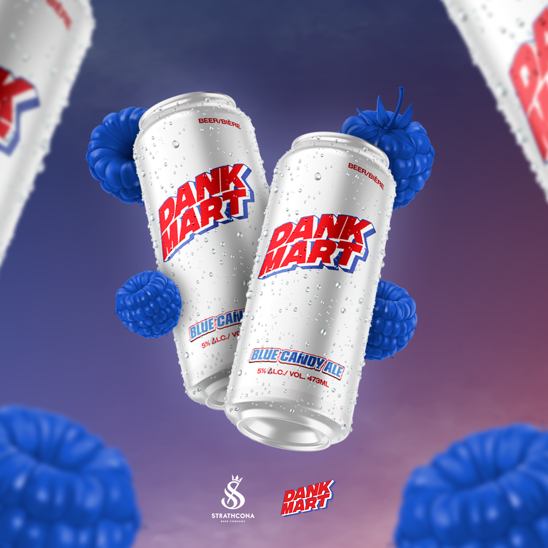 Dank Mart collaborated with Strathcona Brewery, based in Vancouver, to create a special edition candy-flavored ale. We introduced the Blue Raspberry Candy Ale, which offered unique flavor notes. The first of its kind Blue Candy Ale released in March 2022 and sold out within less than two weeks. The distribution of the Blue Candy Ale extended to various locations across British Columbia (BC) and Alberta (AB). It was available at BCL (British Columbia Liquor Stores), Craft Beer & Wine establishments, and Strathcona Brewery itself.